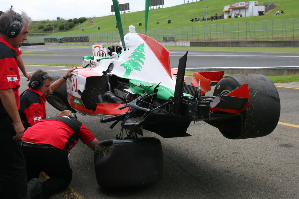 Team Lebanon's qualifying was ruined by this accident damage.