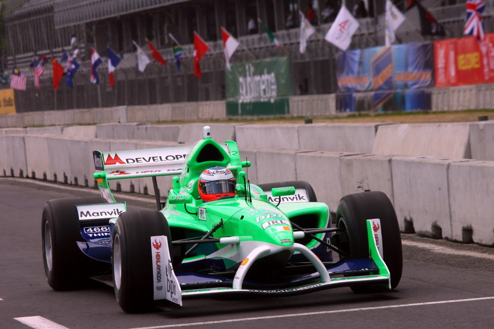 A1 Team Italy led the way in the opening free practice session this morning, with A1GP new boy Davide Rigon making an instant impression, lapping the circuit nearly three tenths quicker than anyone else. Niall Quinn was second quickest for Ireland, which was his best showing in the three rookie sessions he has competed in this season. South Africa's Wesleigh Orr was third fastest ahead of French rookie Nicolas Prost.