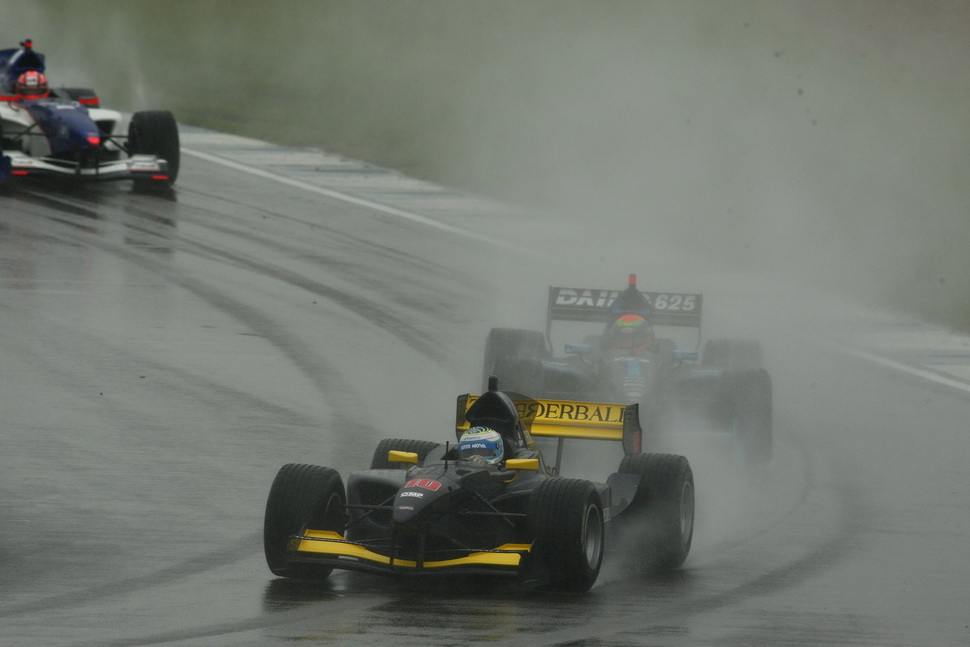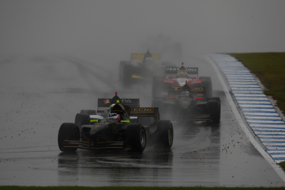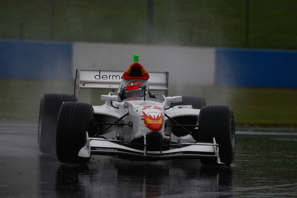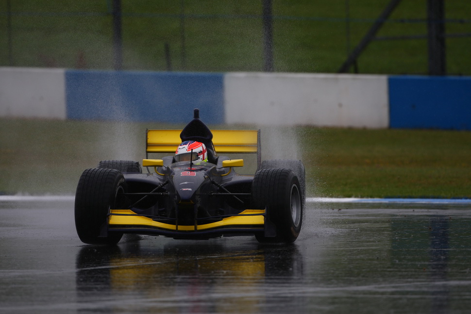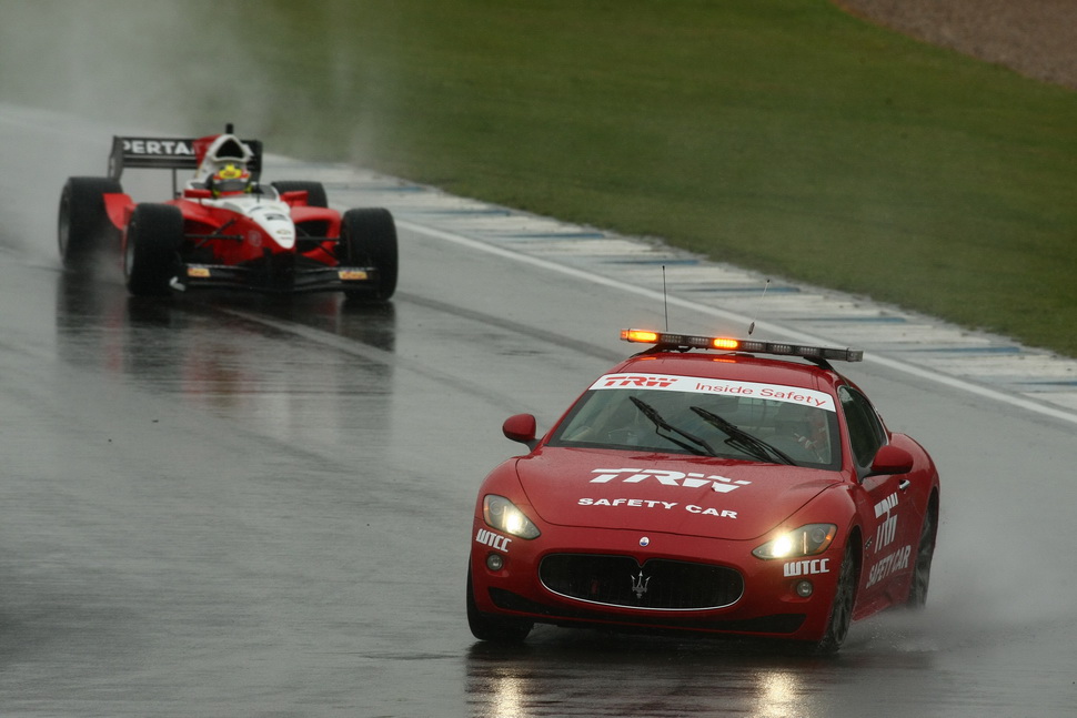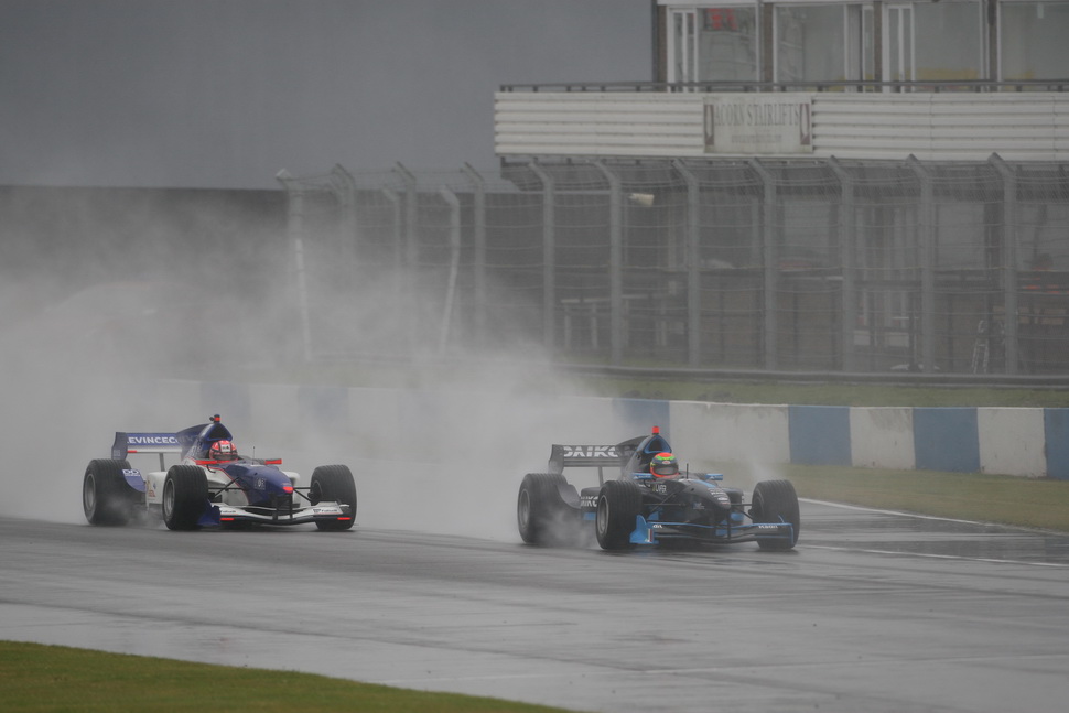 Rain, as expected, fell on the Donington track making it so soaking wet that Race Direction was forced to opt for a start under Safety-Car. This made race tactics by the teams as important as outright pace: with the Safety-Car on track, completing the mandatory pit-stop as soon as the pit window opened seemed to be the best solution, and that's what SuperNova did with both cars, immediately on lap 4.