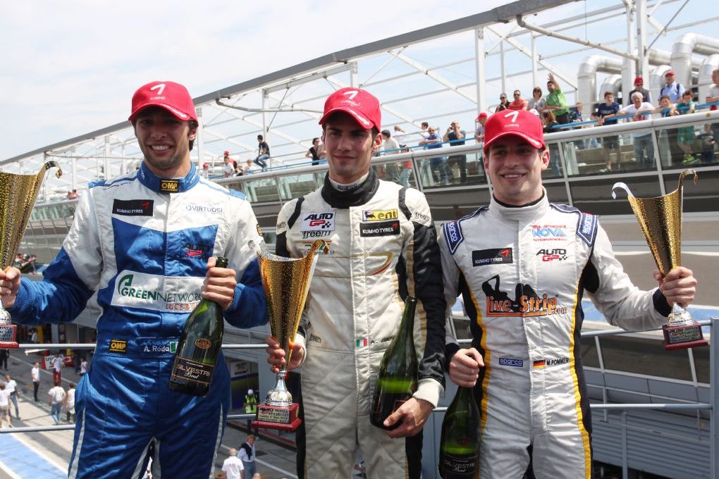 Kevin Giovesi, driving for Eurotech, went from pole to win in Race 2 of the Auto GP round at Monza. The Italian, who started out front thanks to the reverse top-8 grid format, held the lead comfortably and managed to administrate his margin over Virtuosi UK’s Andrea Roda. The Como-based racer, who settled for second for just a few thousands of a second, scored his best career Auto GP finish after a great start that brought him past Giuseppe Cipriani (Ibiza Racing Team). Markus Pommer (Super Nova) secured the 20.000€ bonus for being the best driver of the weekend: after cruising to victory in Race 1, he captured a podium finish today.